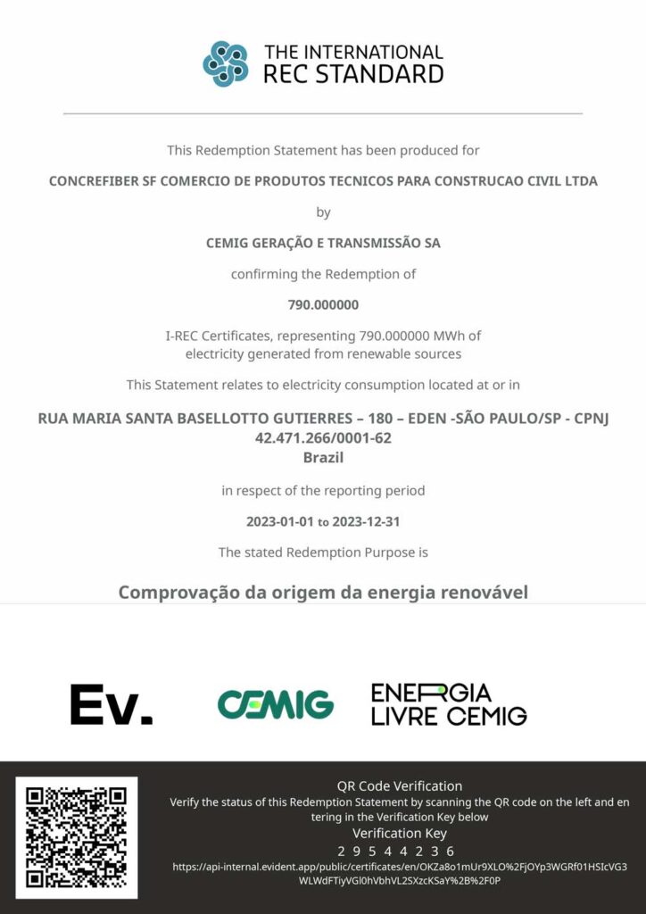 Recebemos o certificado CEMIG Energia Livre e The Internacional REC Standard, validando toda a nossa operação em prol a sustentabilidade.Além da energia limpa, nosso trabalho é focado em reduzir a emissão de CO2, proteção de áreas verdes e contribuição para um planeta mais sustentável.
